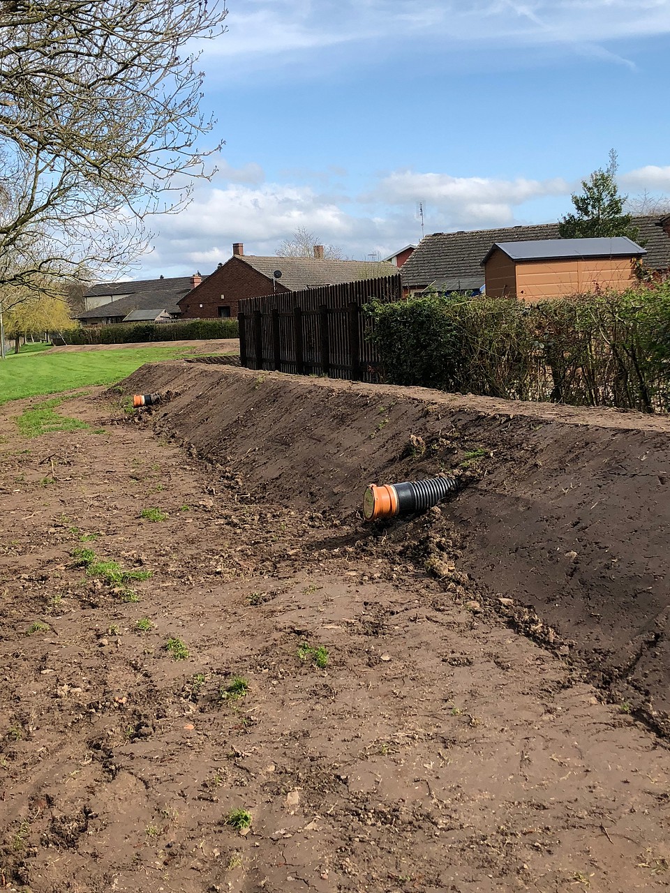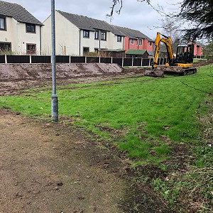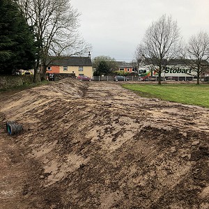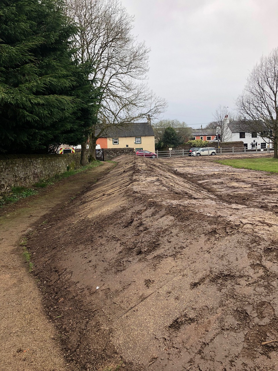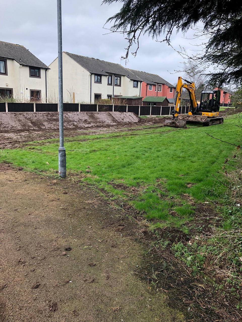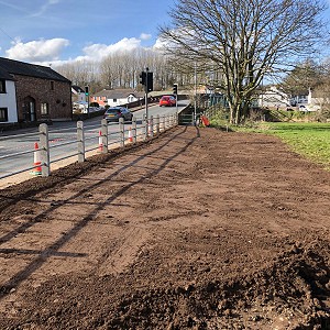 We were contracted on this project as the main contractor, to remove a sandstone wall and install a concrete post and steel tubular rail fence and then to increase earth bunds around the site.